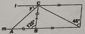 8.28 Math Challenge [Y8]8.28 Math Challenge [Y8]August 28, 2023 Advance H28 In the given figure, I is parallel to m and AB = BC. Find thevalue of y. (fixed)
